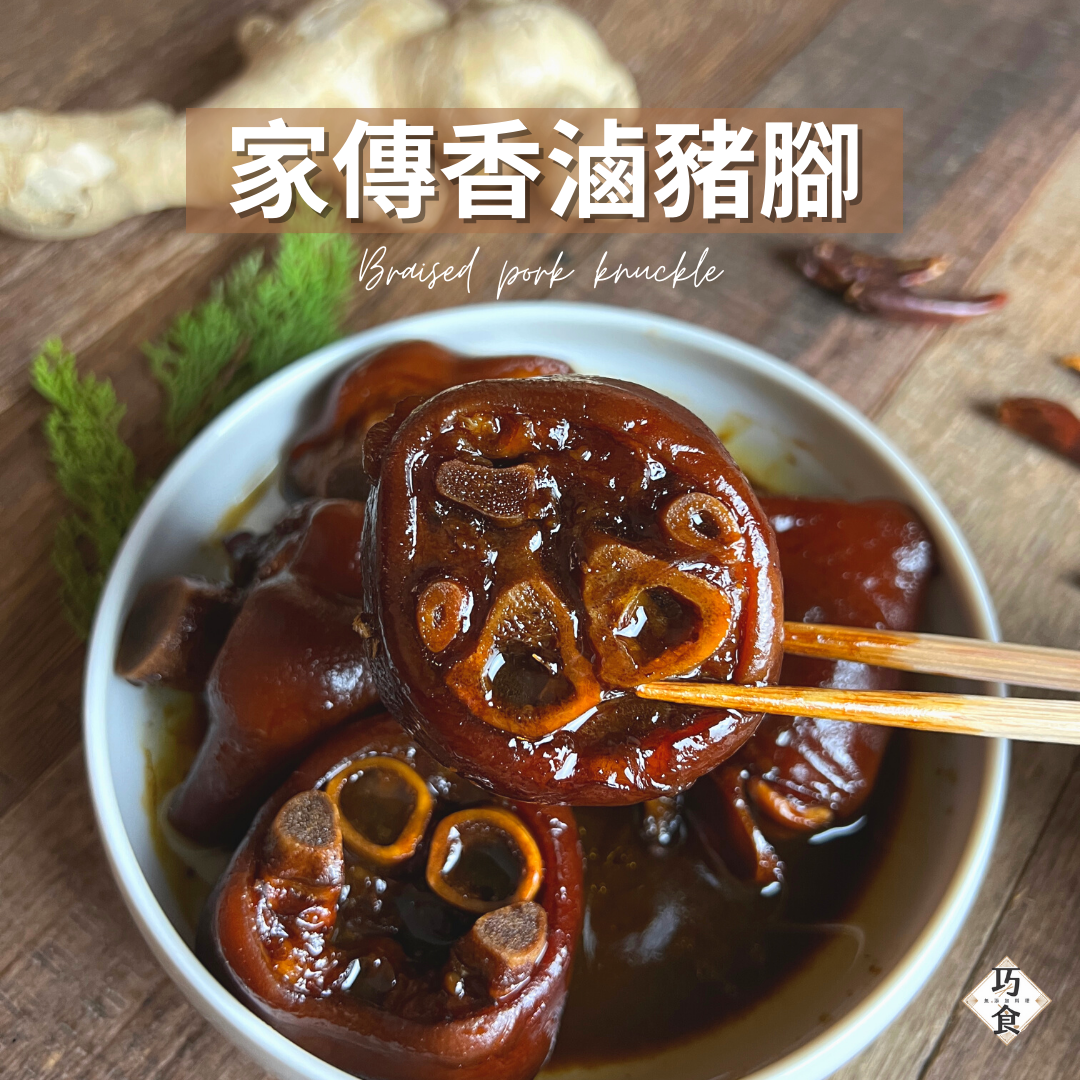國產可溯源檢驗合格豬腳、過濾水、古法釀造醬油(黑豆、水、鹽、糖、甘草)、糖、洋蔥、薑、米酒(蓬萊米、水、精製食用酒精)、鹽巴