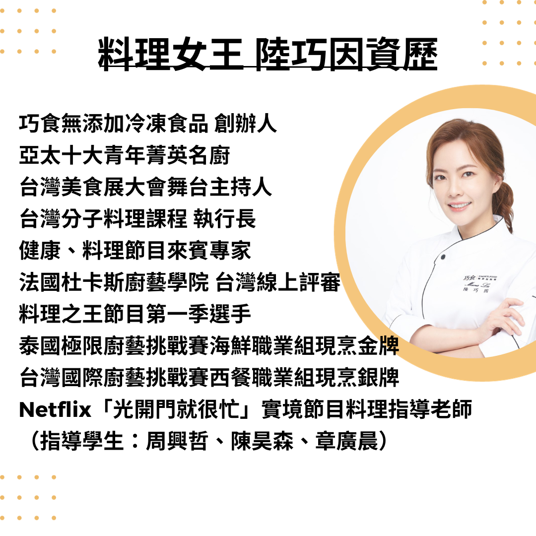 📍 巧食主理人料理女王親自帶領品嚐真食物教學