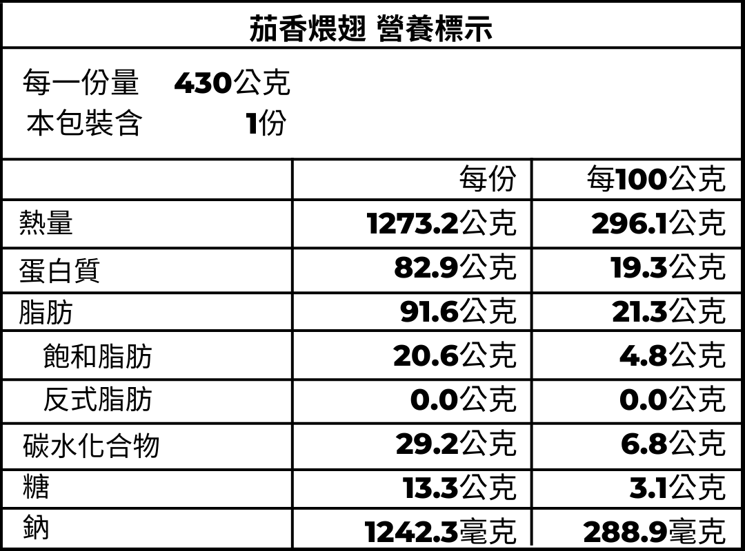 🥗 每人份318大卡,一包四人份熱量1273大卡