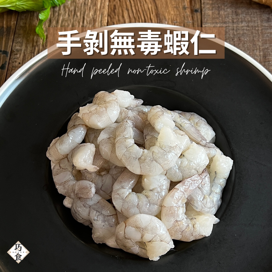 巧食嚴選無毒蝦仁,養殖過程海水為純淨無毒,且不使用藥水膨發、無抗生素、不含重金屬,通過SGS檢驗合格,讓你最安心食用的蝦仁! 全程低溫環境下手工剝殼後急速冷凍,把新鮮與營養緊緊鎖住,蝦肉本身含有豐富的蛋白質、微生素A、微生素B群、鈣、鐵、磷、鋅...等人體需要的微量元素,享受好蝦再也不用自己動手撥殼。